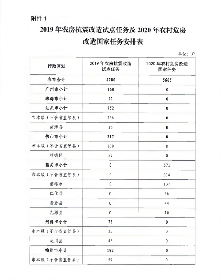附件:1.2019年農(nóng)房抗震改造試點(diǎn)任務(wù)及2020年農(nóng)村危房改造國(guó)家任務(wù)安排表