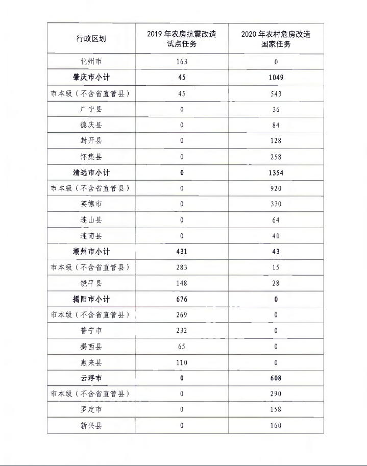 廣東省住房和城鄉(xiāng)建設(shè)廳關(guān)于下達(dá)2020年中央財(cái)政農(nóng)村危房改造補(bǔ)助資金及調(diào)整2019年中央財(cái)政農(nóng)房抗震