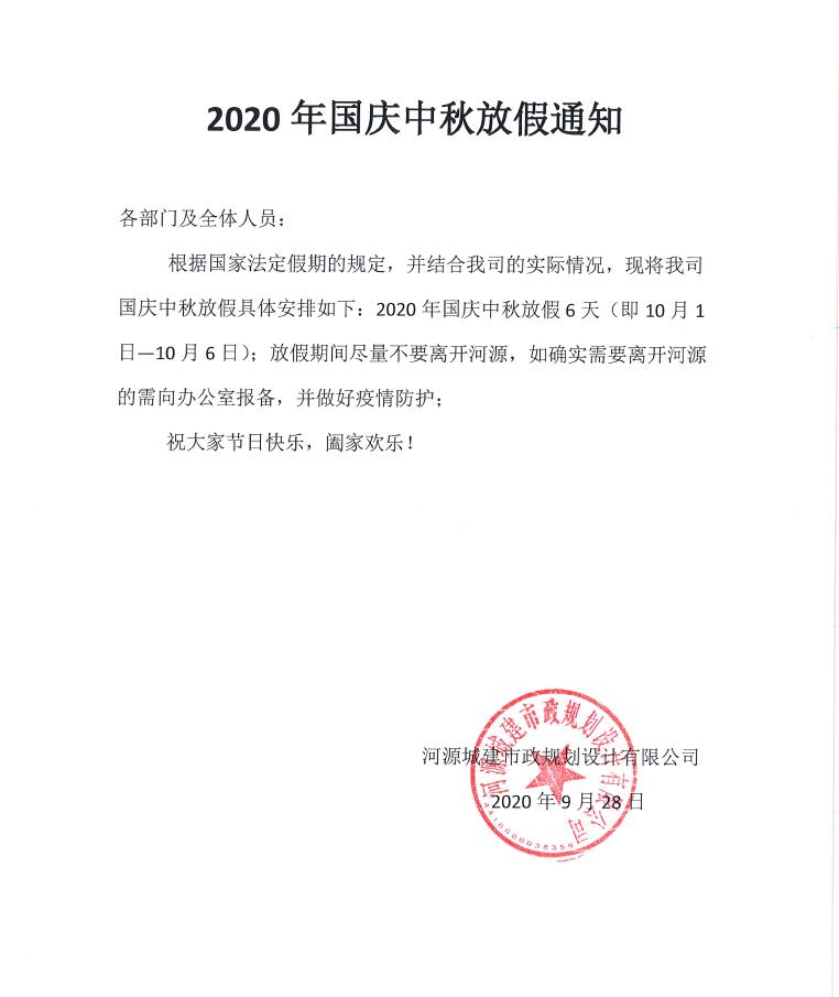 2020年國慶中秋放假通知