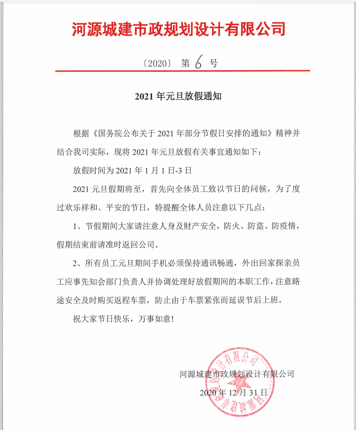 2021年元旦放假通知
