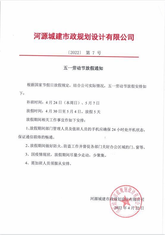 五一勞動節放假通知